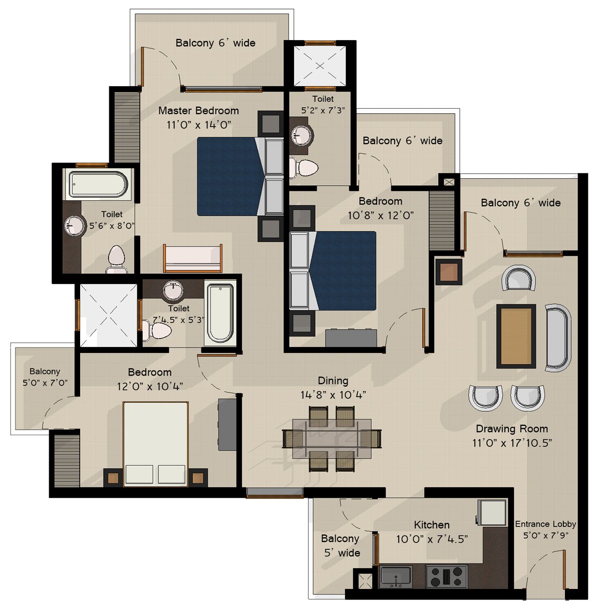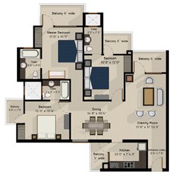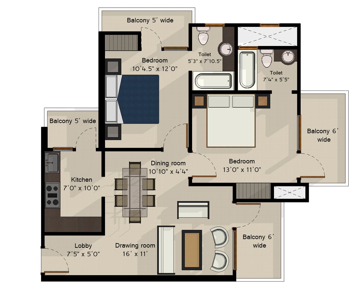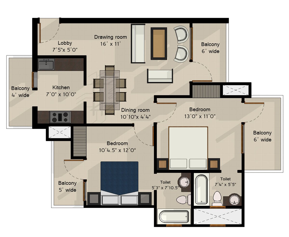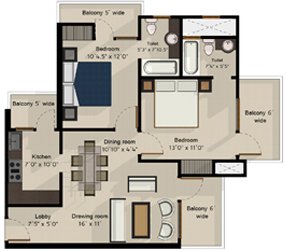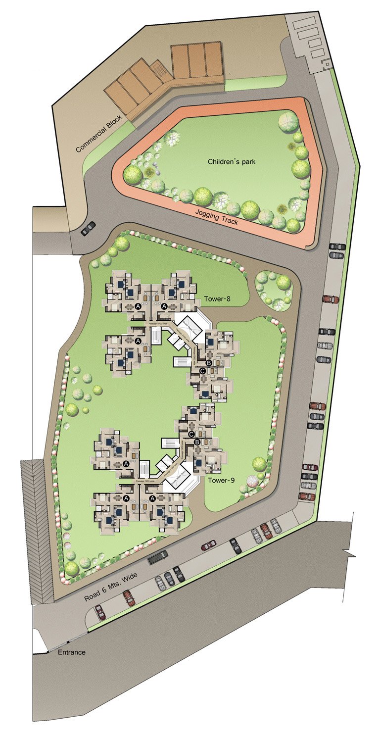 This latest undertaking, managed by Sarena Pvt Ltd, a sister concern of the Ramprastha group brings to you 150 residential units, in a mix of two bedroom and three bedroom units, accommodated in two spires, towering to 15 storeys each. Available 2BHK & 3BHK Apartments